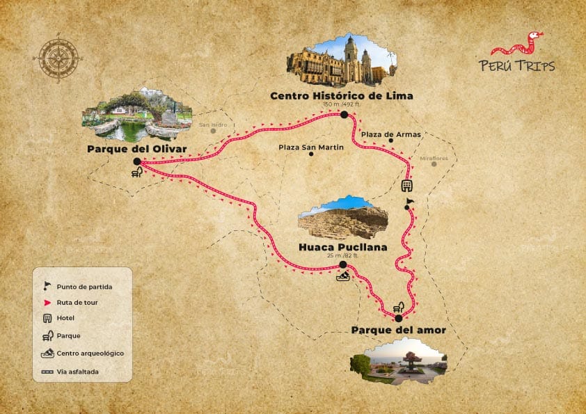 El punto de partida es desde el distrito de Miraflores donde será recogido en la puerta de su hotel.