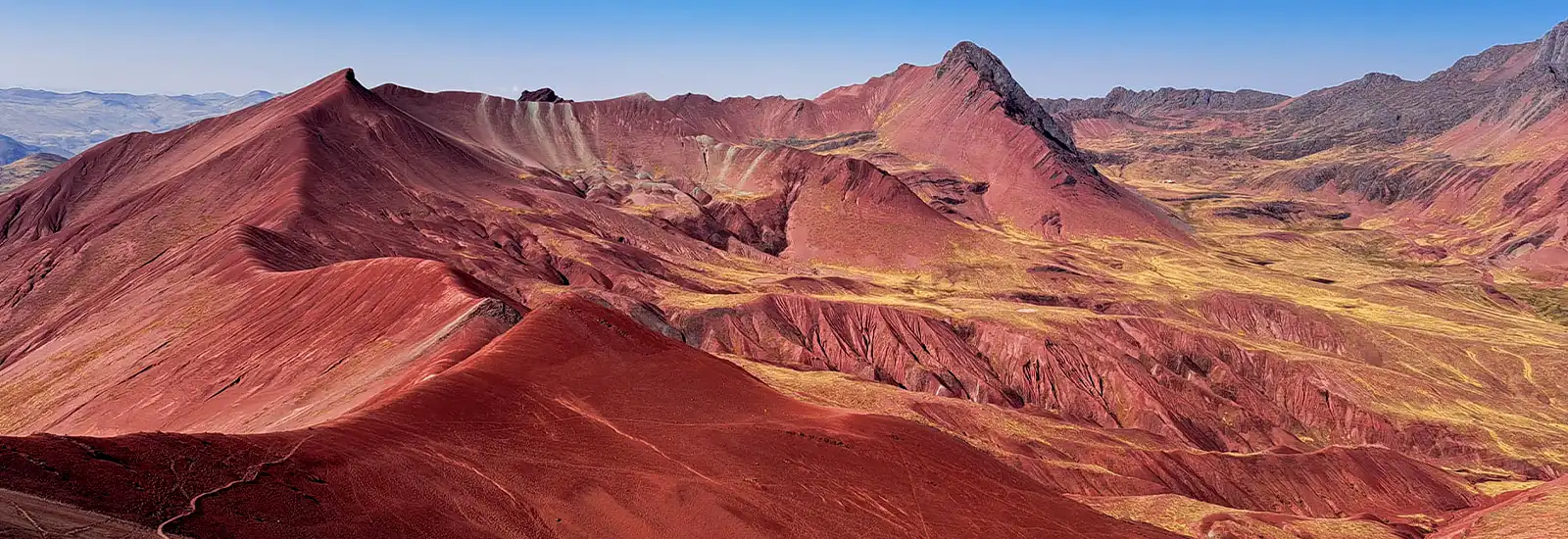 Because in this sector the surrounding mountains are dyed red, and the view is impressive.