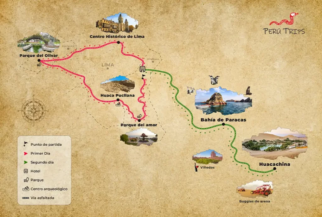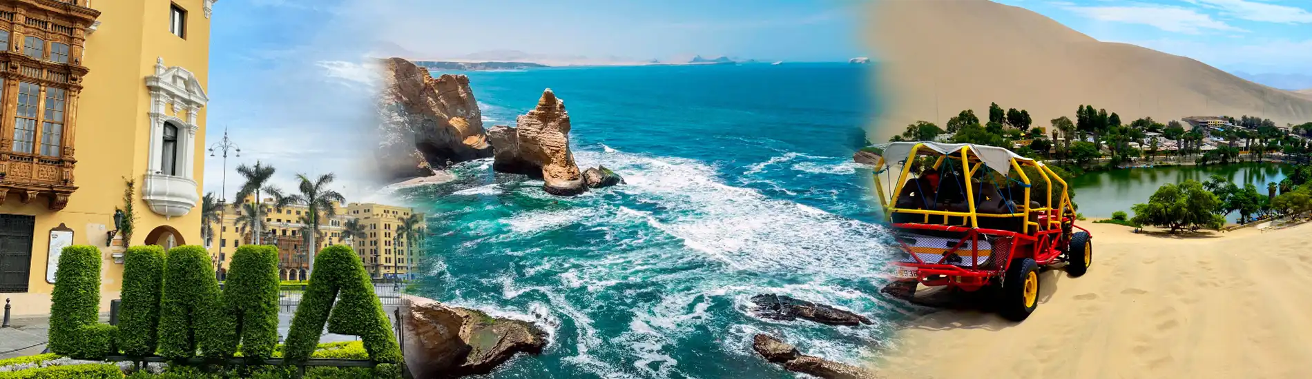 Descubre lo mejor de la costa sur del Perú entre el mar y el desierto, con este increíble tour que te lleva por Lima, Paracas y la Huacachina, comienza explorando la capital con un recorrido por su centro histórico, luego viaja a Paracas para navegar hacia las Islas Ballestas, el mar hogar de lobos marinos y aves exóticas, admira los paisajes de la Reserva Nacional y finaliza la aventura en el mágico oasis de Huacachina, donde podrás deslizarte por las dunas en buggy y practicar sandboard en medio del desierto.