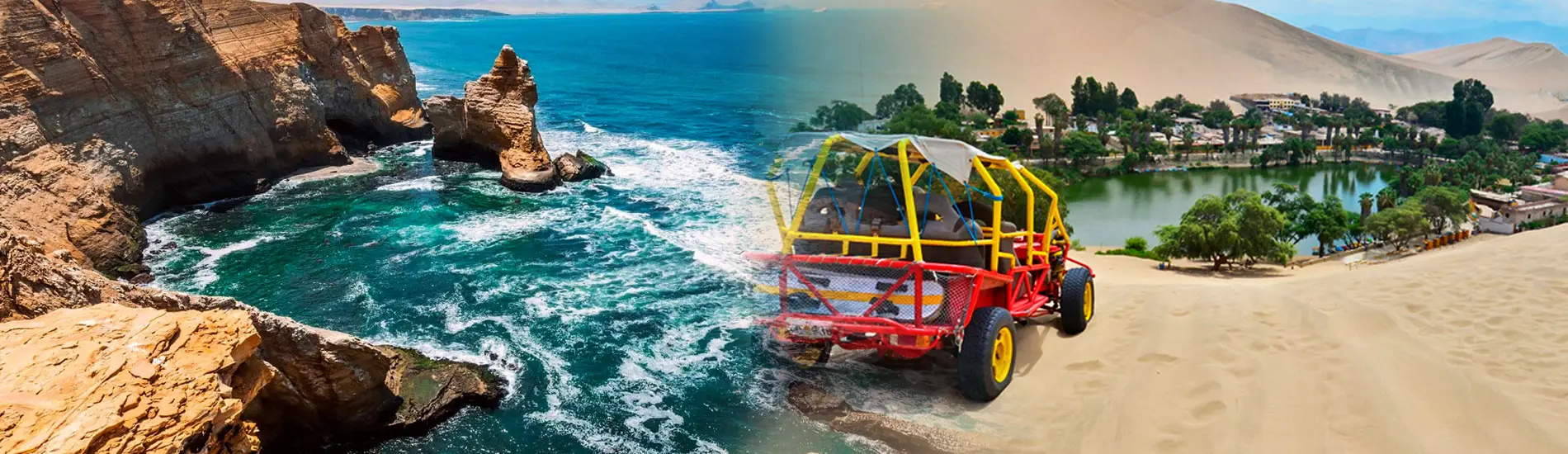 • El siguiente punto de visita es el Oasis de Huacachina, una laguna en medio del desierto, nos tomaremos fotos en este famoso oasis, luego abordaremos los buggies de arena y recorremos las dunas del desierto y por último hacer el deporte de Sandboarding.